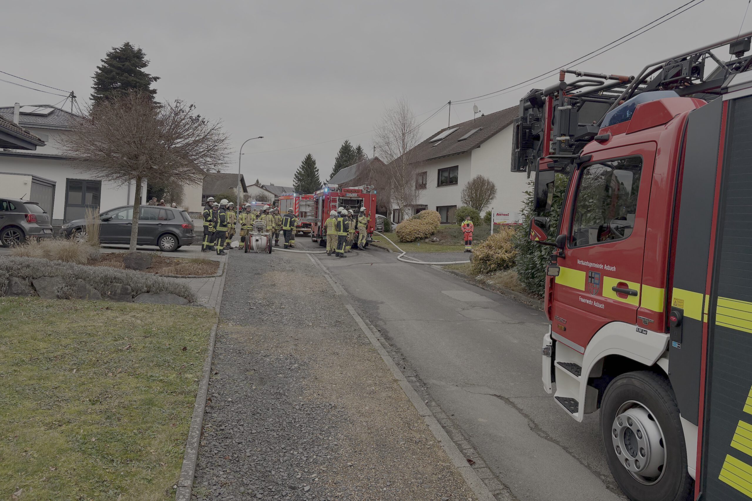 Gegen 13:30 Uhr wurden Feuerwehr und Rettungsdienst mit dem Stichwort „Rauchentwicklung aus Gebäude“ nach Asbach alarmiert. Aufgrund der kurzen Anfahrt von der Rettungswache aus, konnte der erste Rettungswagen bereits zwei Minuten später die Rückmeldung geben, dass eine massive Rauchentwicklung feststellbar ist und die Bewohner das Wohngebäude alle verlassen haben. Aufgrund der Rückmeldung wurde die Alarmstufe erhöht und weitere Einheiten nachalarmiert, während die ersten Einheiten bereits auf dem Weg waren.
