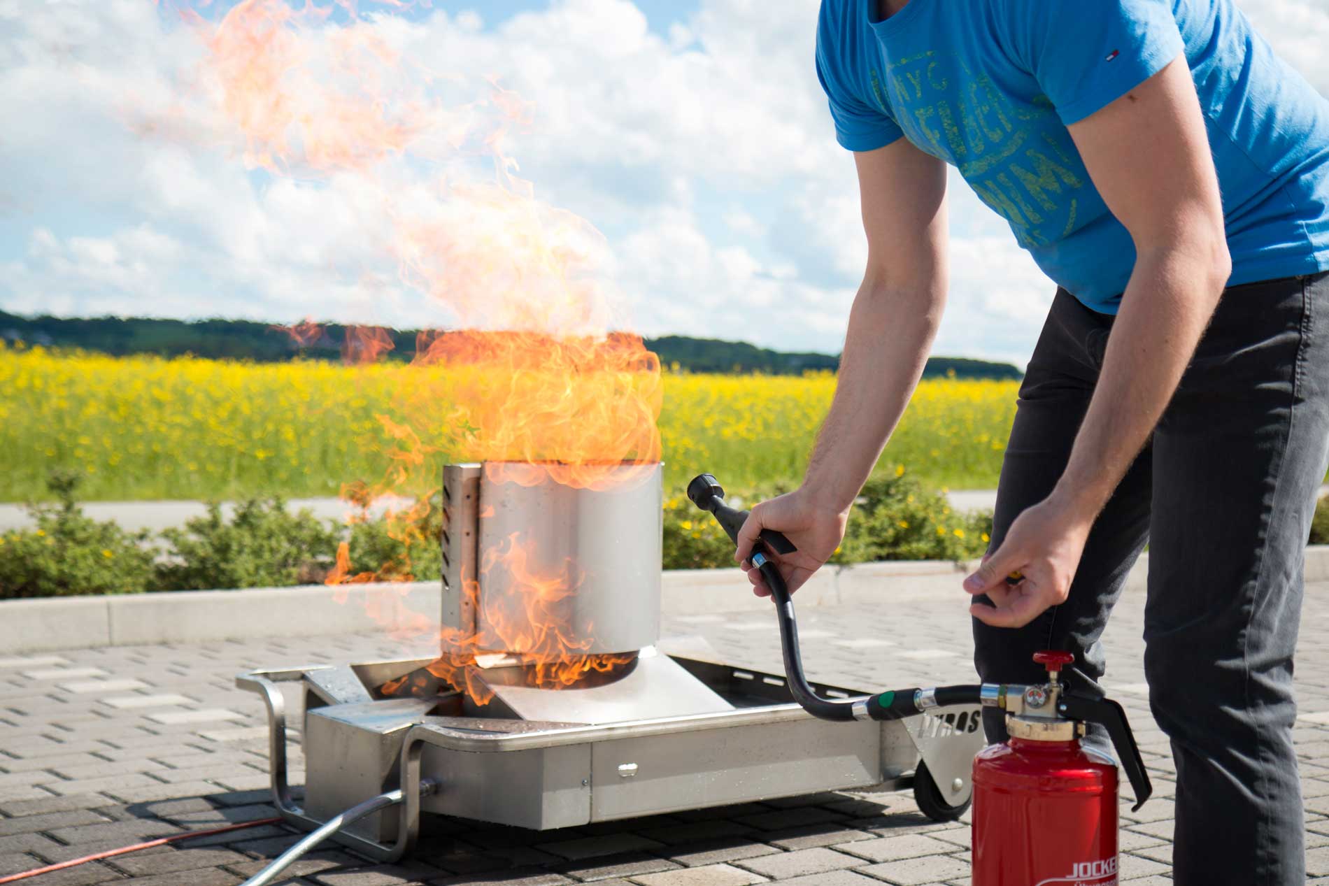 Ist der Brand nicht groß, empfiehlt es sich das brennende Fett durch Aufsetzen des Topfdeckels zu ersticken. Beim Einsatz von Feuerlöschern ist wichtig, dass dieser für Fettbrände geeignet ist. Auch das löschen mittels Löschdecke ist möglich. Wichtig ist aber wie immer, dass ihr euch selber nicht gefährdet! Bringt euch und eure Mitbewohner im Zweifelsfall in Sicherheit und ruft über die Notrufnummer 112 die Feuerwehr.
